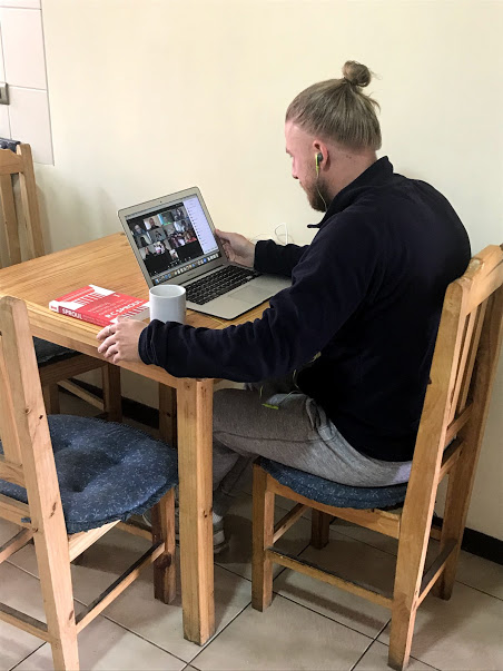 Having one roommate get a jump on leaving before everything shut down, I spent the quarantined season with my other roommate Luke as we did all we could to pass the time and make the most of that season. Blessed with an apartment on the first floor and a patio right outside our window, we often transitioned back and forth between indoors and outdoors just to keep things fresh. I am thankful I purchased a football the week before everything shut down as that became a daily pastime on the patio for us to engage in. Still having to continue classes online, we did our best to stay connected with our classes, our discipleship groups, and our staff through zoom. I was thankful to have Luke to battle the quarantine with, and I think life would have looked quite different without him there. The pictures above show him zooming with a class and working out on our patio, which also became a popular pastime (book filled book-bag lunges only seem appealing when there is nothing else to do). Below are some pictures of what quarantined looked like as I got out of the apartment each Friday and explored what I could of a quarantined city. Notice the sanitation space capsule I had to walk through in order to even enter the grocery store. You can see that many had to break the quarantine measures and risk getting fined or arrested in order to sell their goods on the street. I believe the military and police I saw patrolling the streets were lenient to many because of the dependence they had on their day-to-day income.